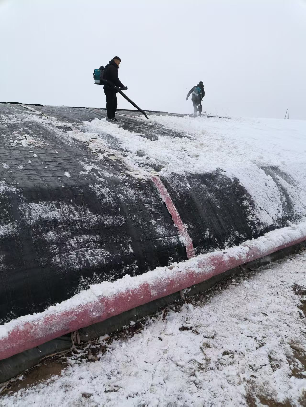 12月13日,桃苑文旅公司进行大棚除雪工作。